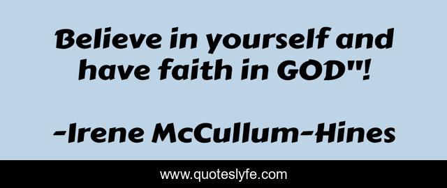 This page presents the quote "Believe in yourself and have faith in GOD"!". Author of this quote is Irene McCullum-Hines. .