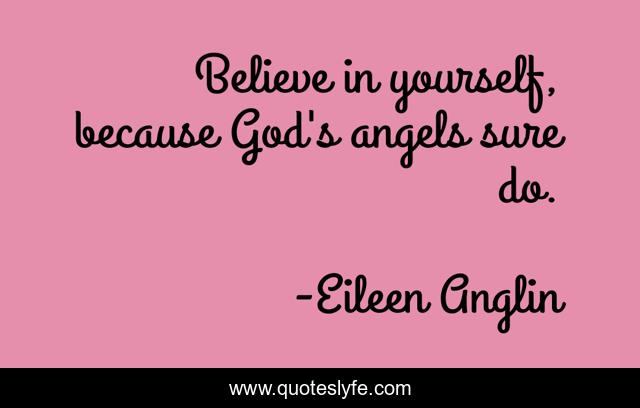 This page presents the quote "Believe in yourself, because God's angels sure do.". Author of this quote is Eileen Anglin. This quote is about spiritual, angels,.