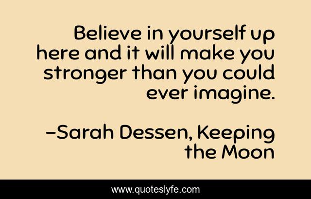 "Sarah Dessen, Keeping the Moon Quotes." Quoteslyfe.com, 2025. Fri. 05 Dec. 2025. <https://www.quoteslyfe.com/quote/Believe-in-yourself-up-here-and-it-142531>.