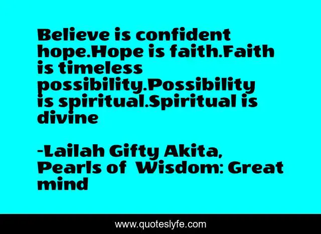 "Lailah Gifty Akita, Pearls of Wisdom: Great mind Quotes." Quoteslyfe.com, 2025. Mon. 08 Dec. 2025. <https://www.quoteslyfe.com/quote/Believe-is-confident-hope-Hope-is-faith-93990>.