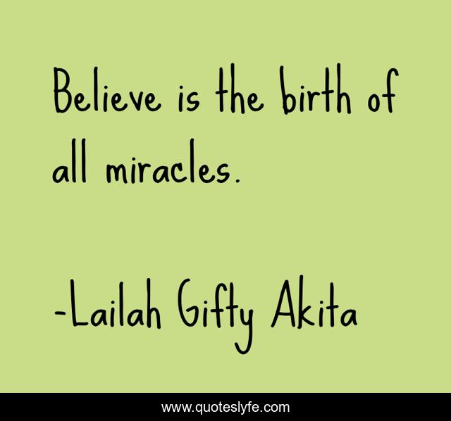 "Lailah Gifty Akita Quotes." Quoteslyfe.com, 2025. Mon. 08 Dec. 2025. <https://www.quoteslyfe.com/quote/Believe-is-the-birth-of-all-miracles-160210>.