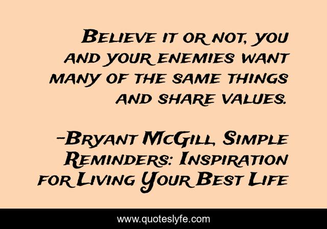 "Bryant McGill, Simple Reminders: Inspiration for Living Your Best Life Quotes." Quoteslyfe.com, 2025. Fri. 05 Dec. 2025. <https://www.quoteslyfe.com/quote/Believe-it-or-not-you-and-your-194444>.