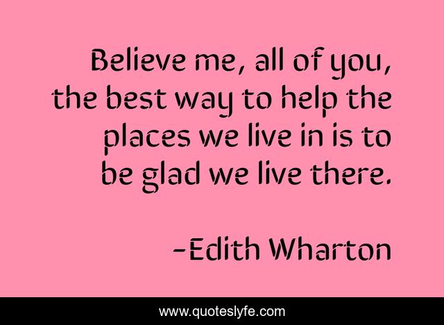This page presents the quote "Believe me, all of you, the best way to help the places we live in is to be glad we live there.". Author of this quote is Edith Wharton. This quote is about home, being-present,.