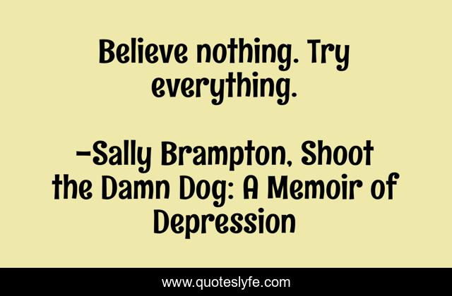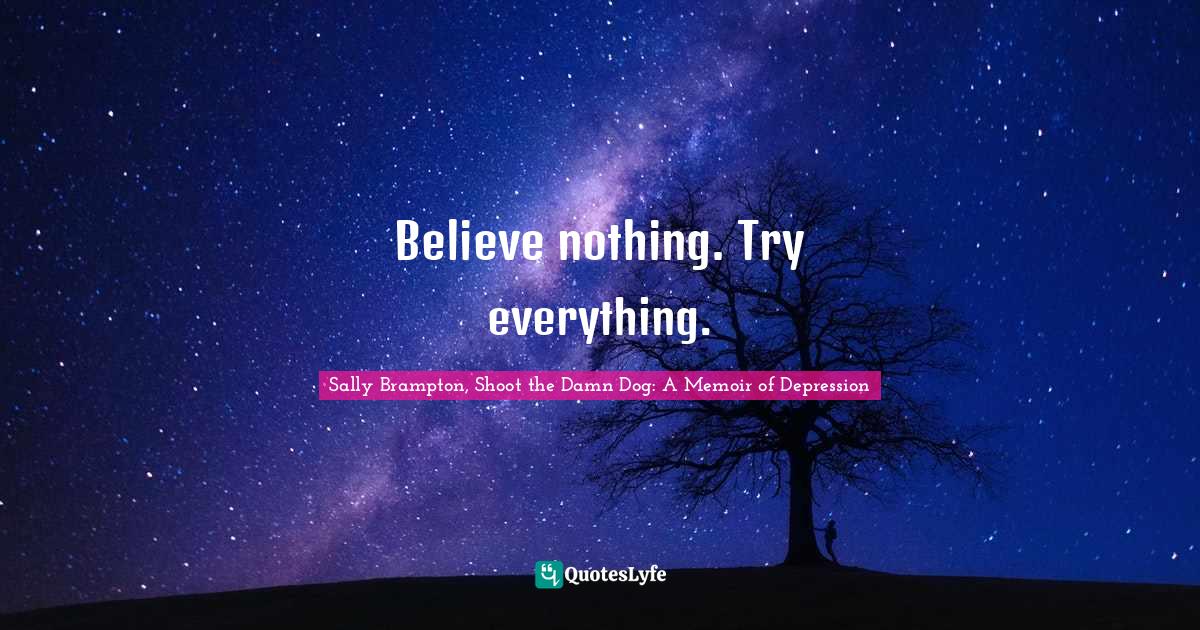 "Sally Brampton, Shoot the Damn Dog: A Memoir of Depression Quotes." Quoteslyfe.com, 2026. Thu. 19 Mar. 2026. <https://www.quoteslyfe.com/quote/Believe-nothing-Try-everything-160155>.
