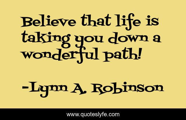 This page presents the quote "Believe that life is taking you down a wonderful path!". Author of this quote is Lynn A. Robinson. This quote is about intuition, inspiration, self-help,.