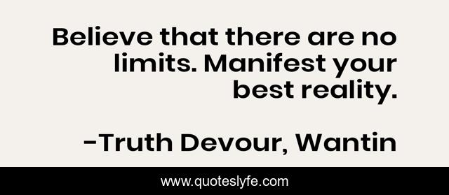 "Truth Devour, Wantin Quotes." Quoteslyfe.com, 2025. Sat. 06 Dec. 2025. <https://www.quoteslyfe.com/quote/Believe-that-there-are-no-limits-Manifest-160376>.