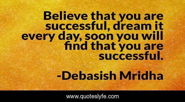 "Debasish Mridha Quotes." Quoteslyfe.com, 2025. Sat. 06 Dec. 2025. <https://www.quoteslyfe.com/quote/Believe-that-you-are-successful-dream-it-69113>.