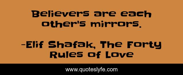 This page presents the quote "Believers are each other's mirrors.". Author of this quote is Elif Shafak, The Forty Rules of Love. This quote is about quran, islam, believer, mirrors,.