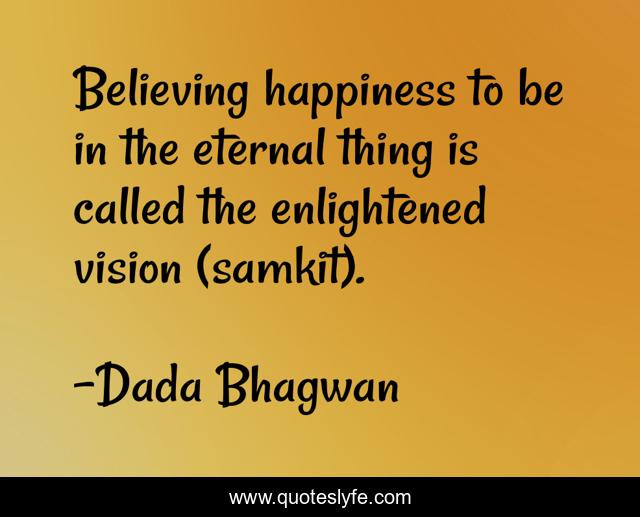 This page presents the quote "Believing happiness to be in the eternal thing is called the enlightened vision (samkit).". Author of this quote is Dada Bhagwan. This quote is about happiness, enlightened, spiritual, vision,.