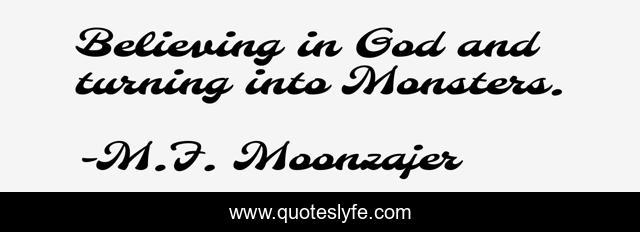 "M.F. Moonzajer Quotes." Quoteslyfe.com, 2025. Sat. 06 Dec. 2025. <https://www.quoteslyfe.com/quote/Believing-in-God-and-turning-into-Monsters-280102>.