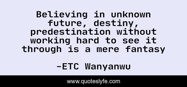 "ETC Wanyanwu Quotes." Quoteslyfe.com, 2025. Fri. 05 Dec. 2025. <https://www.quoteslyfe.com/quote/Believing-in-unknown-future-destiny-predestination-without-82309>.