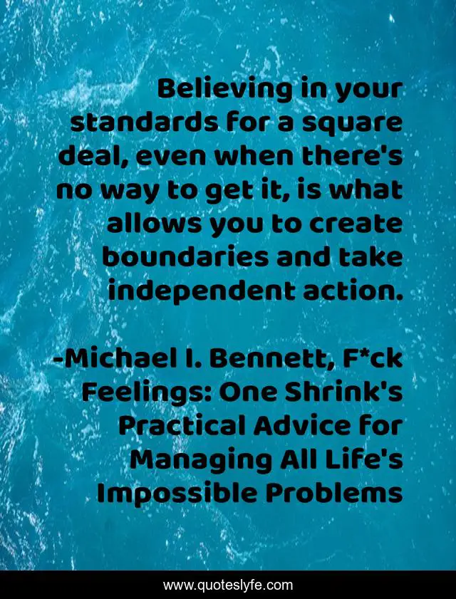 "Michael I. Bennett, F*ck Feelings: One Shrink's Practical Advice for Managing All Life's Impossible Problems Quotes." Quoteslyfe.com, 2025. Sun. 07 Dec. 2025. <https://www.quoteslyfe.com/quote/Believing-in-your-standards-for-a-square-237372>.