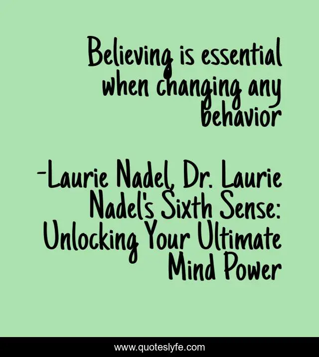 "Laurie Nadel, Dr. Laurie Nadel's Sixth Sense: Unlocking Your Ultimate Mind Power Quotes." Quoteslyfe.com, 2025. Fri. 05 Dec. 2025. <https://www.quoteslyfe.com/quote/Believing-is-essential-when-changing-any-behavior-15448>.