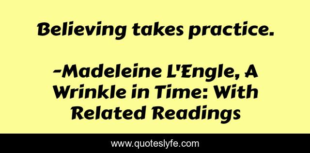 "Madeleine L'Engle, A Wrinkle in Time: With Related Readings Quotes." Quoteslyfe.com, 2025. Mon. 08 Dec. 2025. <https://www.quoteslyfe.com/quote/Believing-takes-practice-110913>.