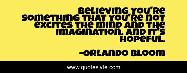 This page presents the quote "Believing you're something that you're not excites the mind and the imagination. And it's hopeful.". Author of this quote is Orlando Bloom. This quote is about mind, hopeful,.