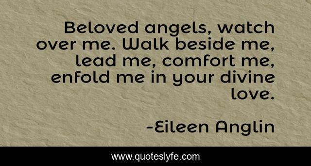 This page presents the quote "Beloved angels, watch over me. Walk beside me, lead me, comfort me, enfold me in your divine love.". Author of this quote is Eileen Anglin. This quote is about angels, prayer,.
