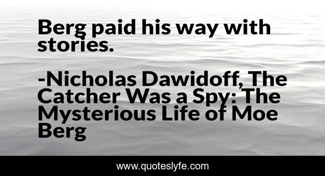 "Nicholas Dawidoff, The Catcher Was a Spy: The Mysterious Life of Moe Berg Quotes." Quoteslyfe.com, 2025. Sat. 06 Dec. 2025. <https://www.quoteslyfe.com/quote/Berg-paid-his-way-with-stories-108387>.
