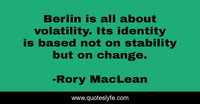 This page presents the quote "Berlin is all about volatility. Its identity is based not on stability but on change.". Author of this quote is Rory MacLean. This quote is about stability, berlin, identity,.