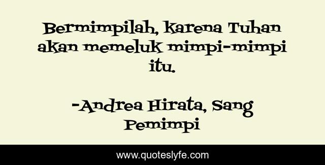 "Andrea Hirata, Sang Pemimpi Quotes." Quoteslyfe.com, 2025. Sat. 06 Dec. 2025. <https://www.quoteslyfe.com/quote/Bermimpilah-karena-Tuhan-akan-memeluk-mimpi-mimpi-4060>.