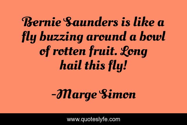 This page presents the quote "Bernie Saunders is like a fly buzzing around a bowl of rotten fruit. Long hail this fly!". Author of this quote is Marge Simon. This quote is about political-commentary, political,.