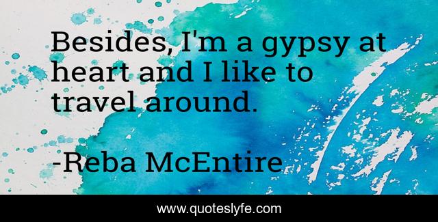 This page presents the quote "Besides, I'm a gypsy at heart and I like to travel around.". Author of this quote is Reba McEntire. This quote is about heart, like, gypsy,.