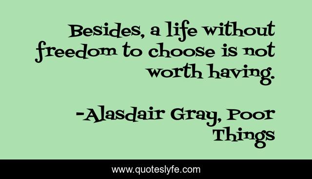 "Alasdair Gray, Poor Things Quotes." Quoteslyfe.com, 2025. Fri. 05 Dec. 2025. <https://www.quoteslyfe.com/quote/Besides-a-life-without-freedom-to-choose-54531>.