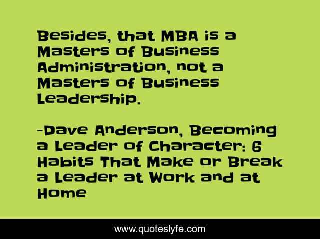 "Dave Anderson, Becoming a Leader of Character: 6 Habits That Make or Break a Leader at Work and at Home Quotes." Quoteslyfe.com, 2025. Fri. 05 Dec. 2025. <https://www.quoteslyfe.com/quote/Besides-that-MBA-is-a-Masters-of-128401>.