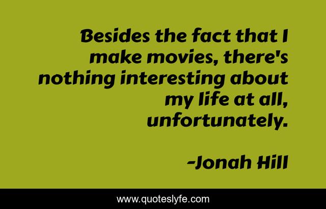 This page presents the quote "Besides the fact that I make movies, there's nothing interesting about my life at all, unfortunately.". Author of this quote is Jonah Hill. This quote is about interesting, life, my life,.