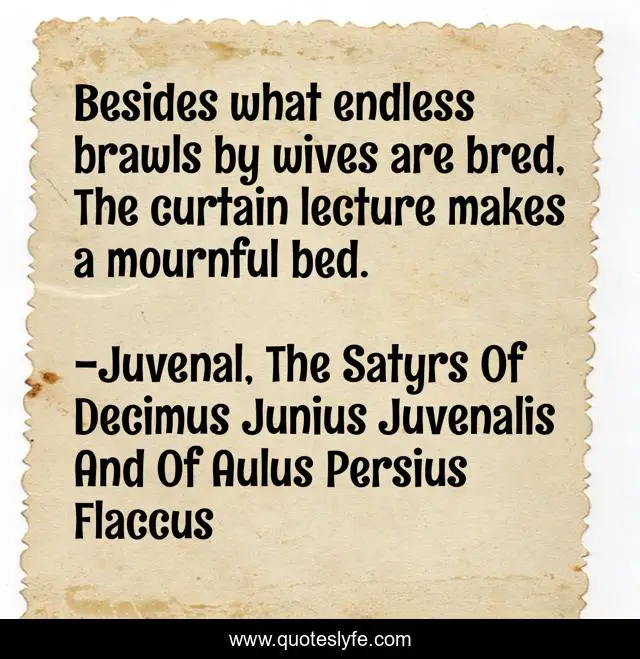 "Juvenal, The Satyrs Of Decimus Junius Juvenalis And Of Aulus Persius Flaccus Quotes." Quoteslyfe.com, 2025. Fri. 05 Dec. 2025. <https://www.quoteslyfe.com/quote/Besides-what-endless-brawls-by-wives-are-76855>.