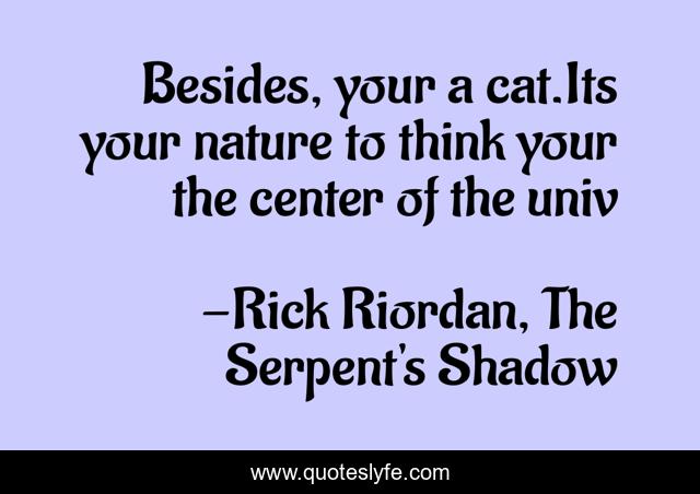 This page presents the quote "Besides, your a cat.Its your nature to think your the center of the univ". Author of this quote is Rick Riordan, The Serpent's Shadow. This quote is about universe, bast, cats,.