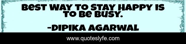 This page presents the quote "Best Way to Stay Happy is to be busy.". Author of this quote is Dipika Agarwal. This quote is about qotd, life, motivational-inspirational, motivational, confidence, happy-life-secrets, thoughts, positive, happiness,.