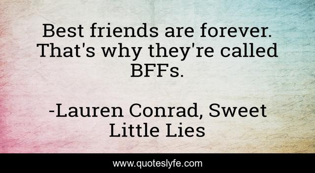 This page presents the quote "Best friends are forever. That's why they're called BFFs.". Author of this quote is Lauren Conrad, Sweet Little Lies. This quote is about friends, friendship, bffs, best-friends,.