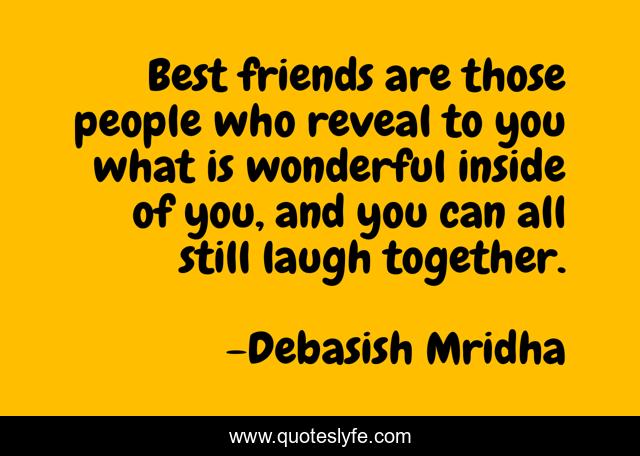 This page presents the quote "Best friends are those people who reveal to you what is wonderful inside of you, and you can all still laugh together.". Author of this quote is Debasish Mridha. This quote is about philosophy, debasish-mridha, quotes, debasish-mridha-md, inspirational, enthusiasm, what-makes-a-best-friend, laugh-with-best-friends, best-friends,.