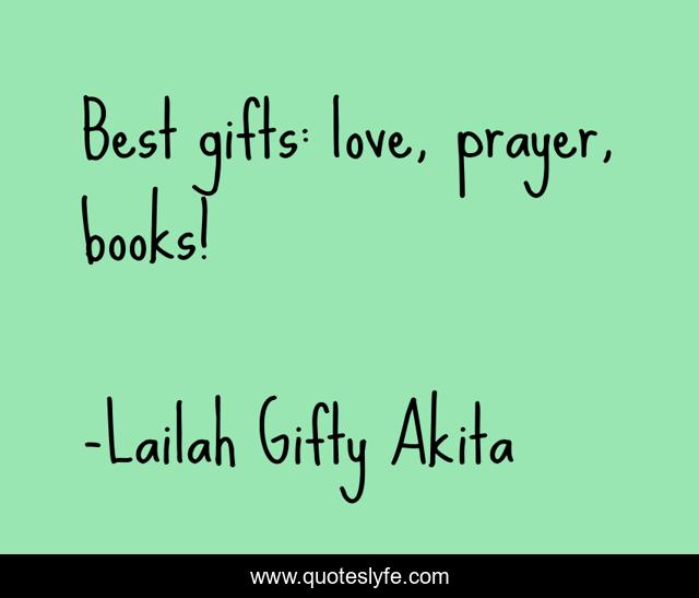 "Lailah Gifty Akita Quotes." Quoteslyfe.com, 2025. Mon. 08 Dec. 2025. <https://www.quoteslyfe.com/quote/Best-gifts-love-prayer-books-114637>.