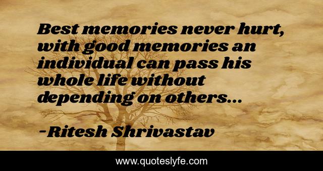 This page presents the quote "Best memories never hurt, with good memories an individual can pass his whole life without depending on others...". Author of this quote is Ritesh Shrivastav. This quote is about memories, life,.