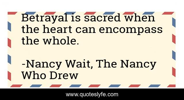 This page presents the quote "Betrayal is sacred when the heart can encompass the whole.". Author of this quote is Nancy Wait, The Nancy Who Drew. .