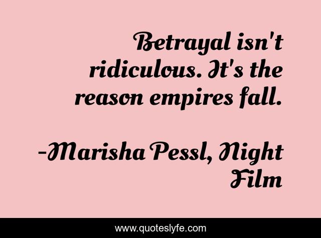 This page presents the quote "Betrayal isn't ridiculous. It's the reason empires fall.". Author of this quote is Marisha Pessl, Night Film. This quote is about betrayal, night-film,.