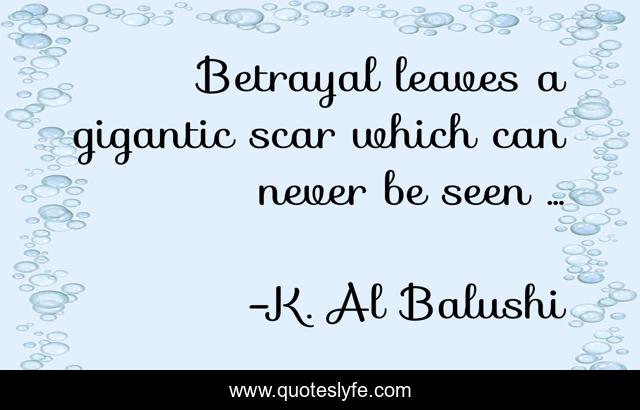 "K. Al Balushi Quotes." Quoteslyfe.com, 2025. Sat. 06 Dec. 2025. <https://www.quoteslyfe.com/quote/Betrayal-leaves-a-gigantic-scar-which-can-225216>.