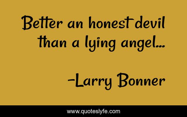 This page presents the quote "Better an honest devil than a lying angel...". Author of this quote is Larry Bonner. .