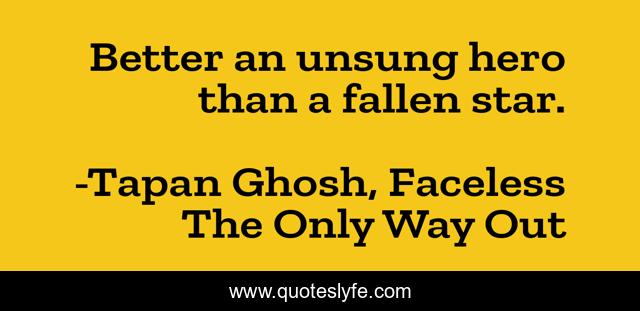 This page presents the quote "Better an unsung hero than a fallen star.". Author of this quote is Tapan Ghosh, Faceless The Only Way Out. This quote is about heroism, hero, leader, legends,.