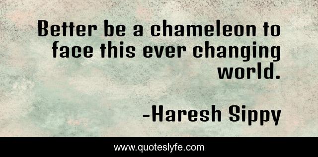 This page presents the quote "Better be a chameleon to face this ever changing world.". Author of this quote is Haresh Sippy. .