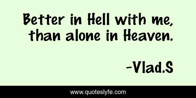 This page presents the quote "Better in Hell with me, than alone in Heaven.". Author of this quote is Vlad.S. This quote is about hell, heaven, lovers,.
