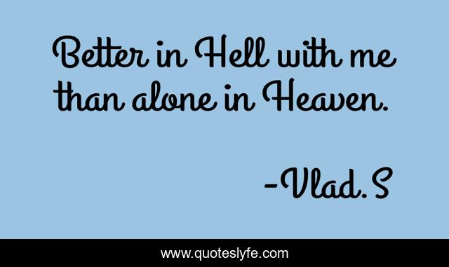 This page presents the quote "Better in Hell with me than alone in Heaven.". Author of this quote is Vlad.S. This quote is about hell, heaven, lovers,.
