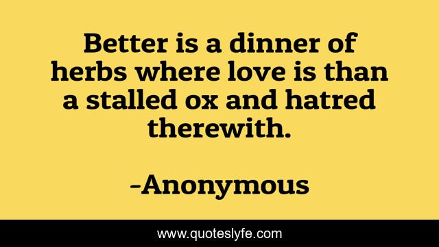 This page presents the quote "Better is a dinner of herbs where love is than a stalled ox and hatred therewith.". Author of this quote is Anonymous. .