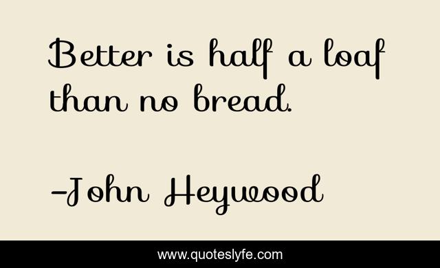 This page presents the quote "Better is half a loaf than no bread.". Author of this quote is John Heywood. .