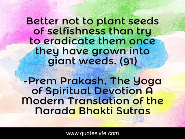 "Prem Prakash, The Yoga of Spiritual Devotion A Modern Translation of the Narada Bhakti Sutras Quotes." Quoteslyfe.com, 2025. Tue. 09 Dec. 2025. <https://www.quoteslyfe.com/quote/Better-not-to-plant-seeds-of-selfishness-240376>.
