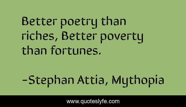 This page presents the quote "Better poetry than riches, Better poverty than fortunes.". Author of this quote is Stephan Attia, Mythopia. .