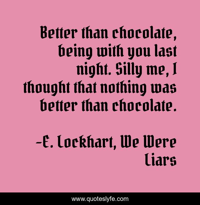 This page presents the quote "Better than chocolate, being with you last night. Silly me, I thought that nothing was better than chocolate.". Author of this quote is E. Lockhart, We Were Liars. This quote is about love, affection,.