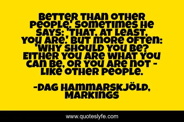 "Dag Hammarskjöld, Markings Quotes." Quoteslyfe.com, 2025. Tue. 09 Dec. 2025. <https://www.quoteslyfe.com/quote/Better-than-other-people-Sometimes-he-says-207612>.