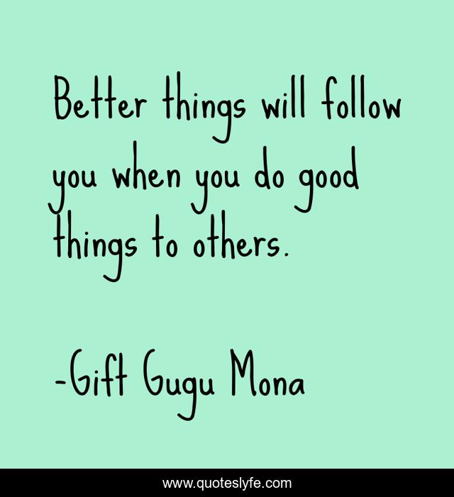 This page presents the quote "Better things will follow you when you do good things to others.". Author of this quote is Gift Gugu Mona. This quote is about better, things, good, others,.